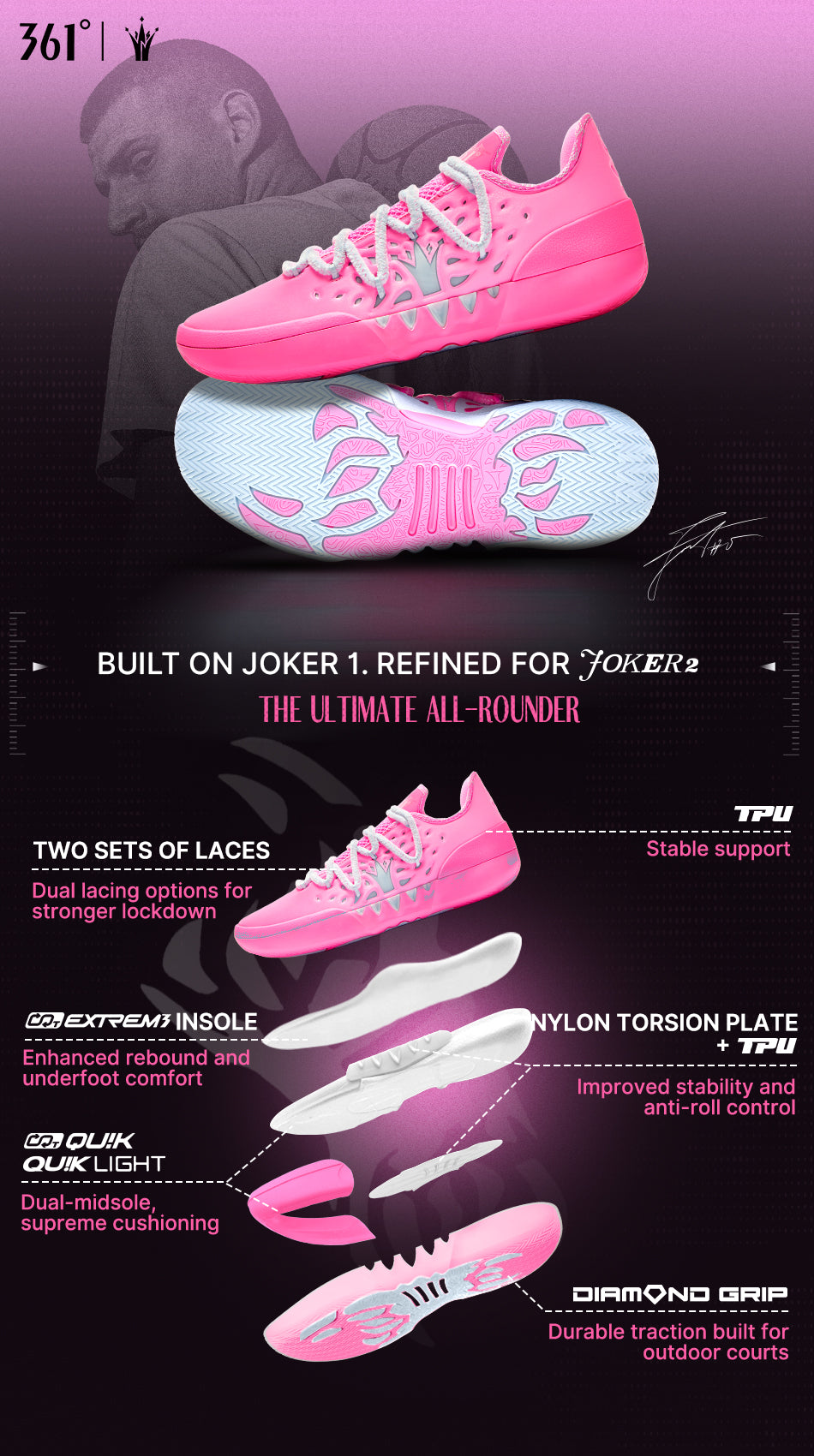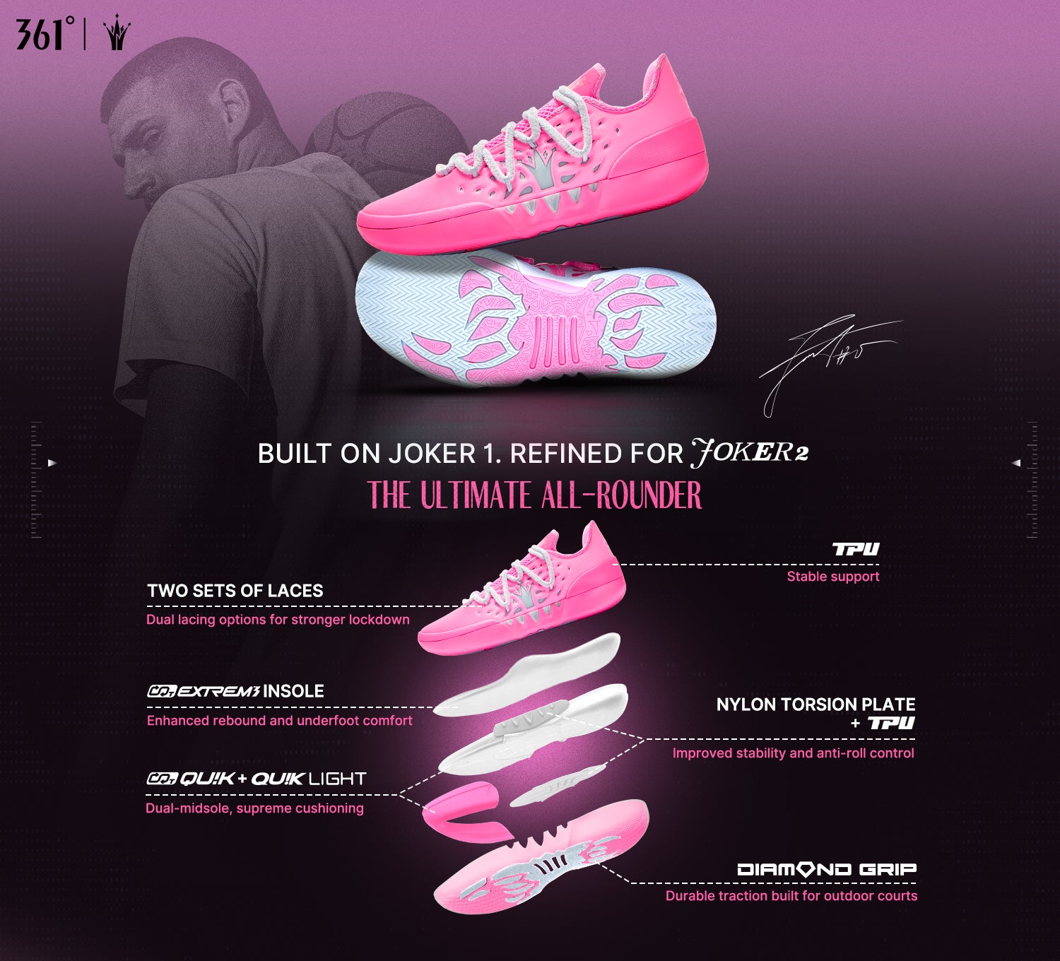 Integrating Jokić’s personal logo with Serbian floral elements, the design merges MVP-level performance with everyday style, balancing athletic function and artistic expression. It's an all-around performance basketball shoe designed for forwards, centers, and guards.