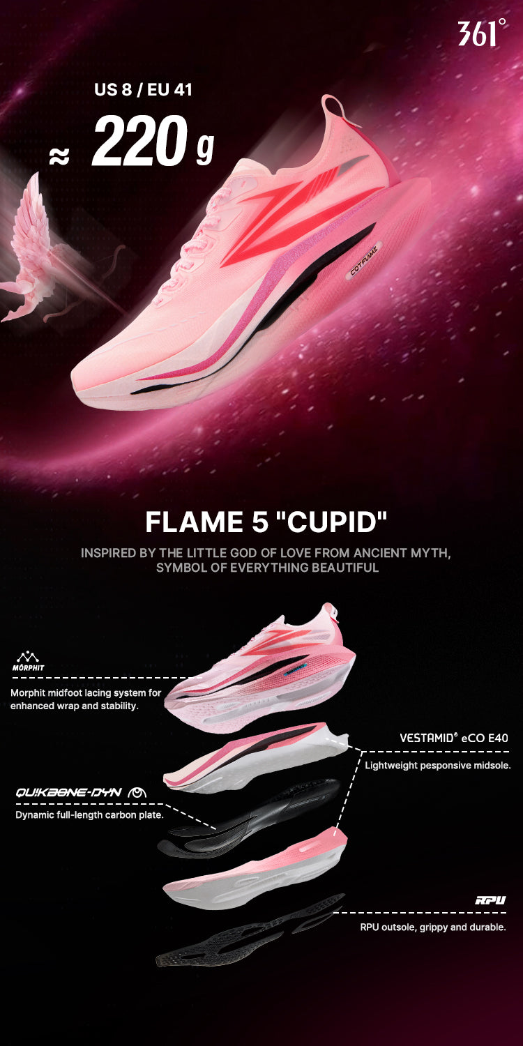 Full-length curved carbon plate with winged design and widened midfoot platform ensures smooth transitions, lateral stability, and effortless propulsion.
