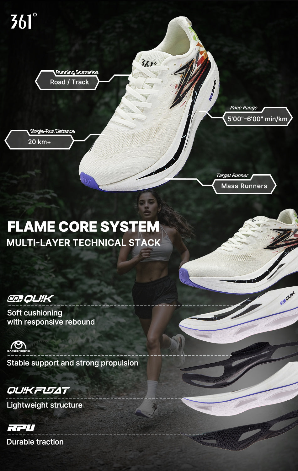 The full-length CQT QU!K midsole works with a 4mm supercritical insole to absorb impact on landing and instantly convert it into powerful rebound. A 7mm optimal drop ensures smooth transitions from training to race pace, delivering cushioning that stays soft without collapsing—helping runners run longer, feel lighter, and accelerate with every step.