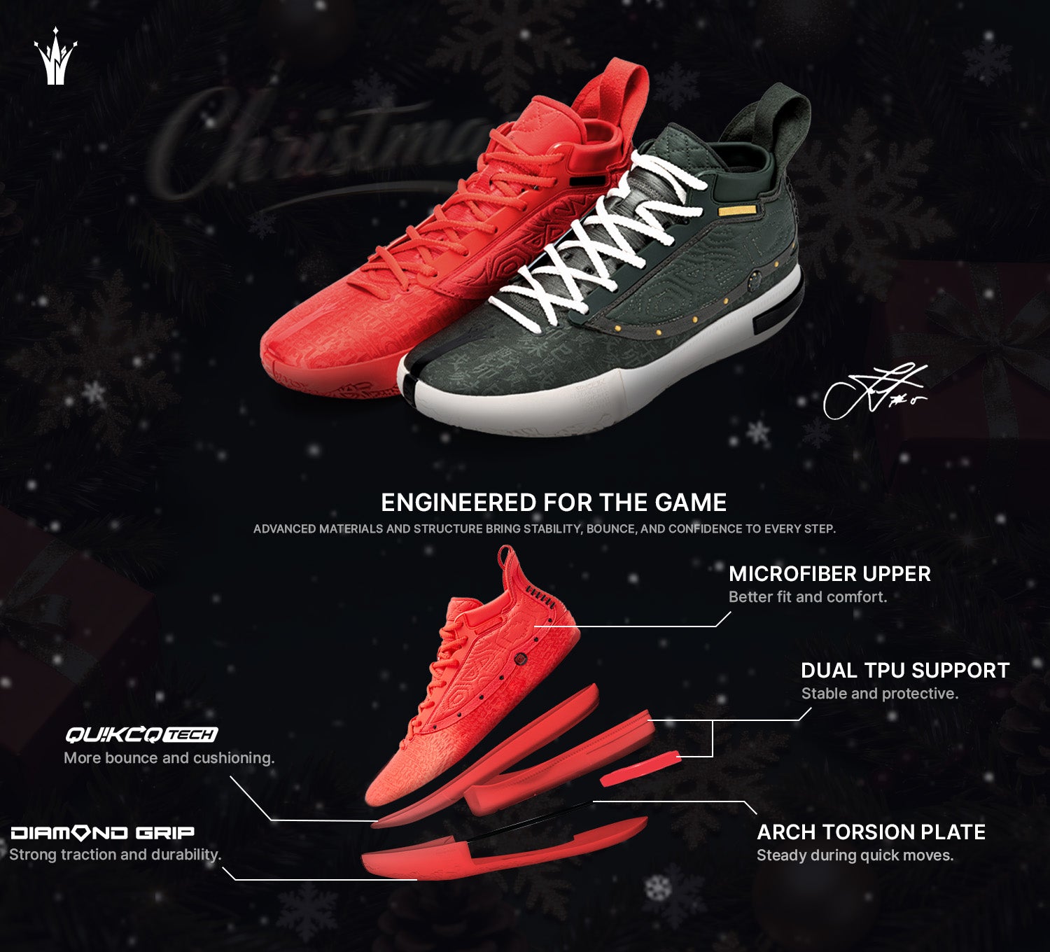 A full-size TPU on both the inner and outer sides, combined with a TPU at the heel, forms a dual TPU system that provides athletes with enhanced support and stability to dominate the court.