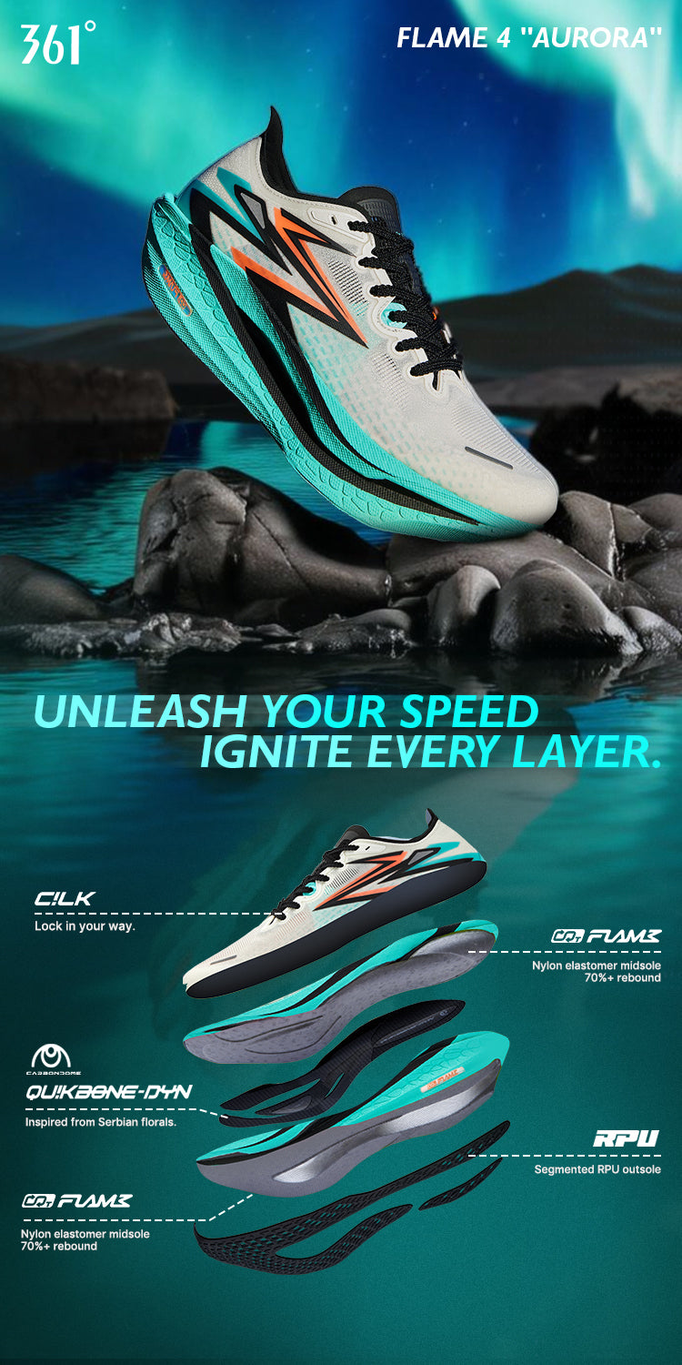 Placa de fibra de carbono Qu!kBONE DYNAM!C para propulsión en el rodamiento. Diseño en forma de arco bajo la parte delantera del pie para un mejor ajuste, diseño ascendente en la parte media del pie para un mayor soporte, y diseño en forma de arco en el talón para absorción de impactos al aterrizar.