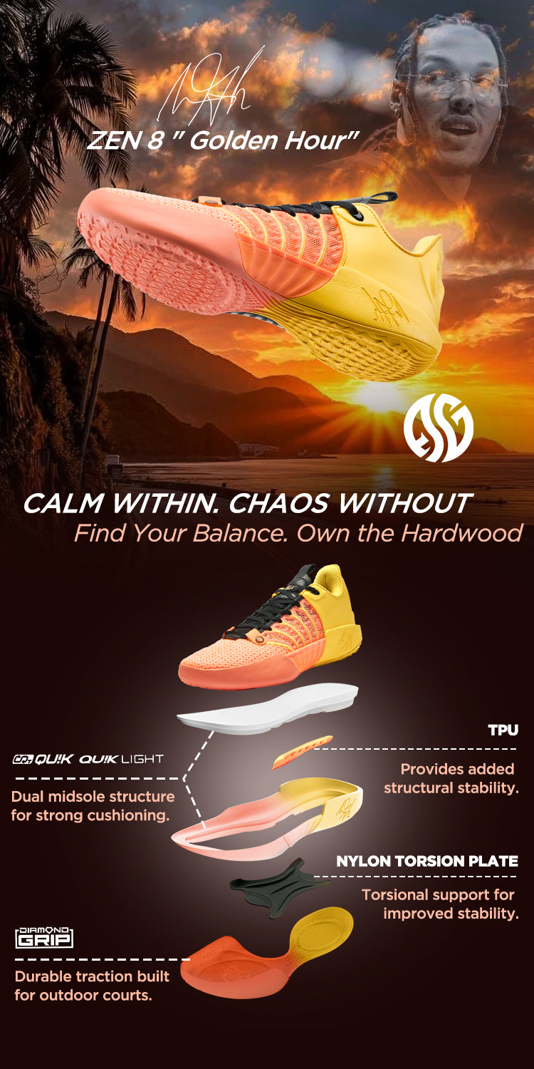 CQT QU!K and QU!K LIGHT dual midsole technologies absorb impact instantly while delivering lightweight cushioning and responsive rebound for quick, agile starts.