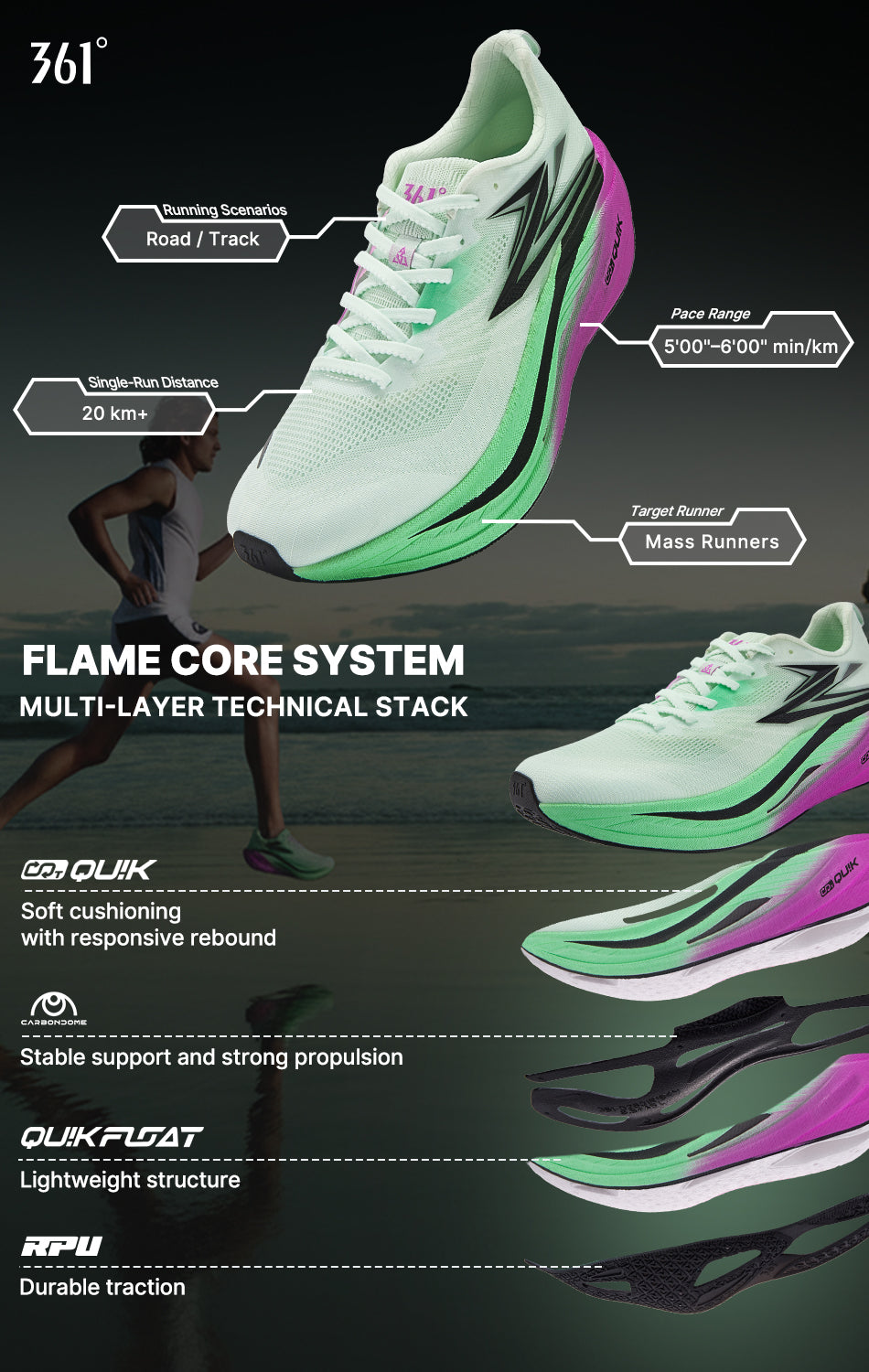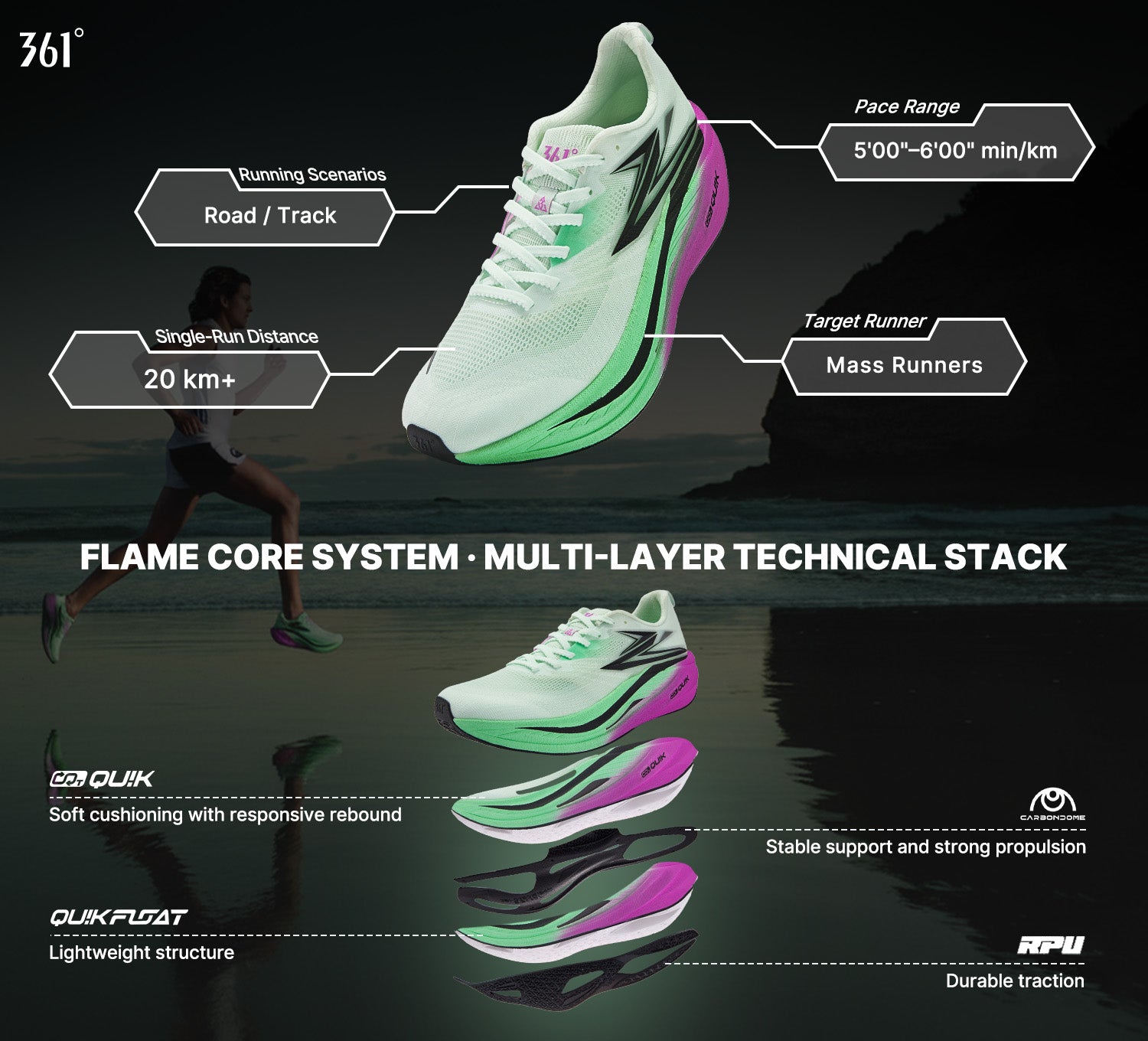 The hybrid flexible carbon-fiber plate structure moderates the stiffness of traditional full-carbon setups, enhancing torsional stability and propulsion. Designed to support advanced speed training and daily runs alike, it adapts to different stride patterns—making every step more stable and energy-efficient.