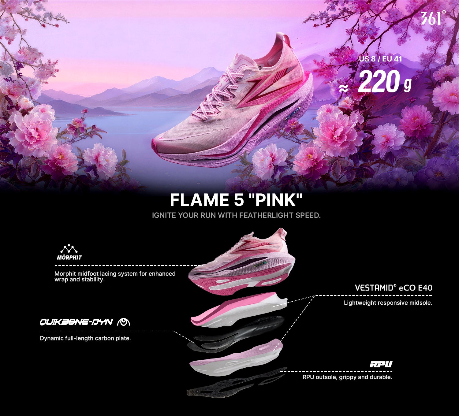 RPU rubber outsole support durable traction across multiple running surfaces.