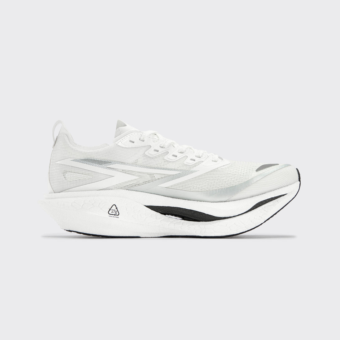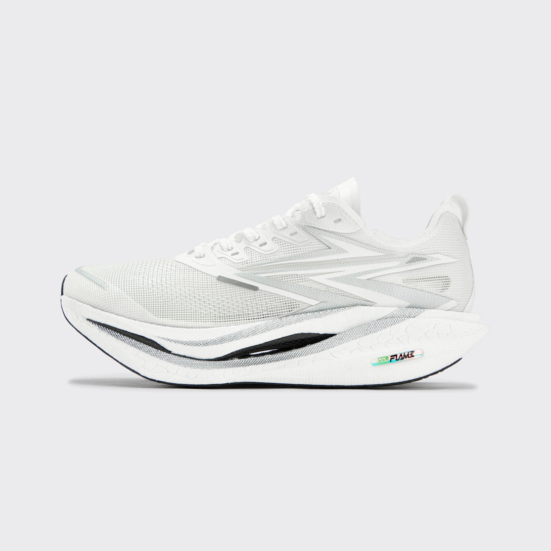 Double-layer Qu!kFLAMECQT (FLAMECQT) midsole for lighter weight, more springiness, and better cushioning, effectively saving energy for long-distance running activities. 30mm forefoot / 36mm heel drop with optimized 6mm offset for enhanced ground feel.