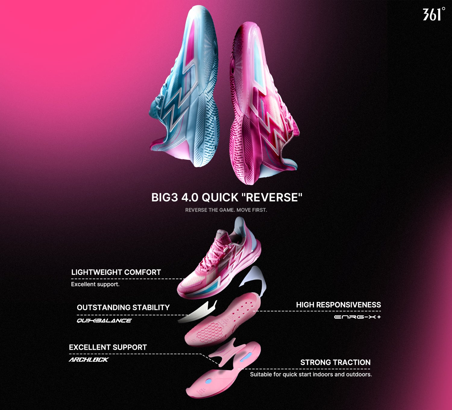 Made of rubber, the outsole is grippy in performance and durable for long-time play, suitable for quick start indoors and outdoors.