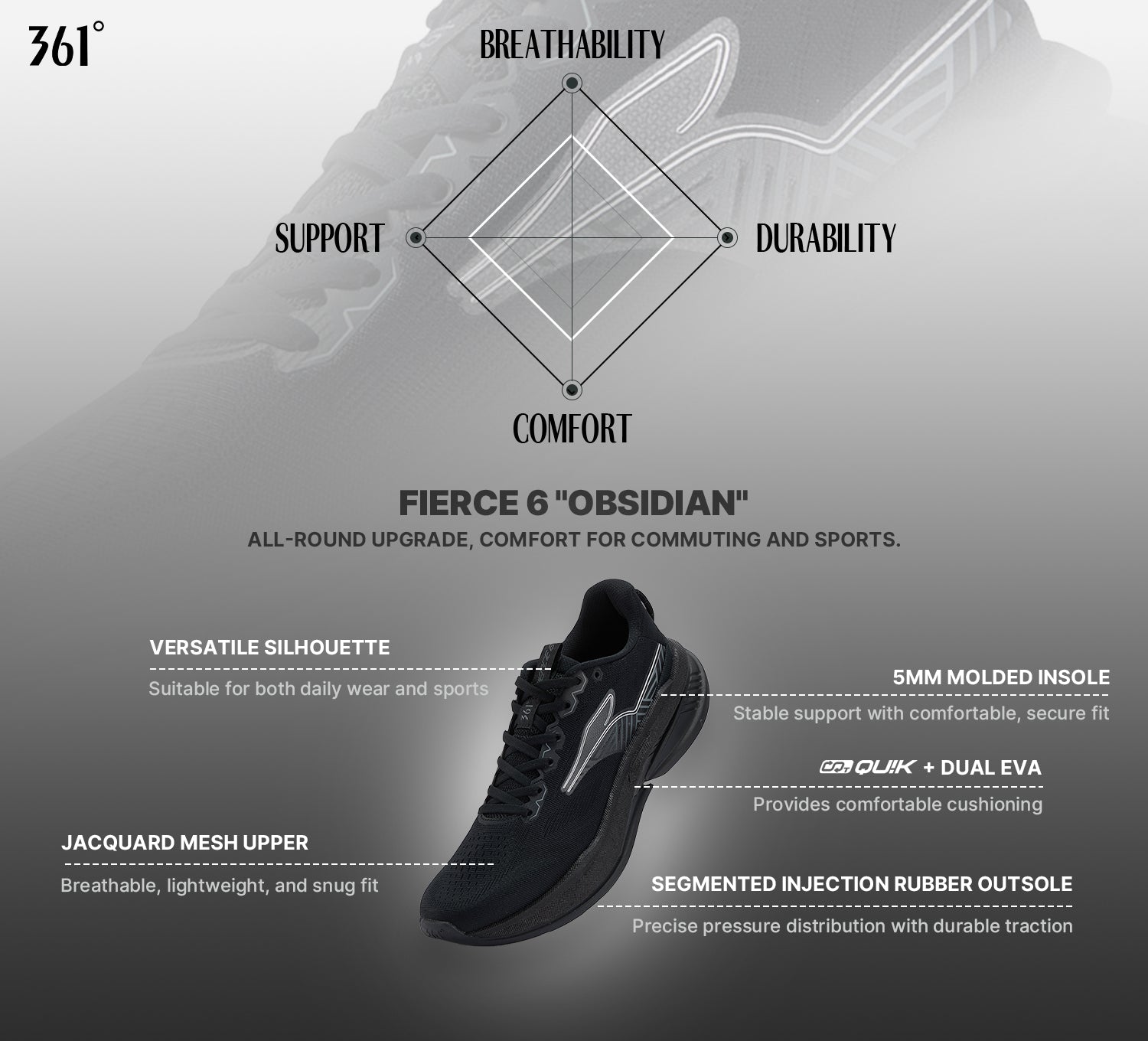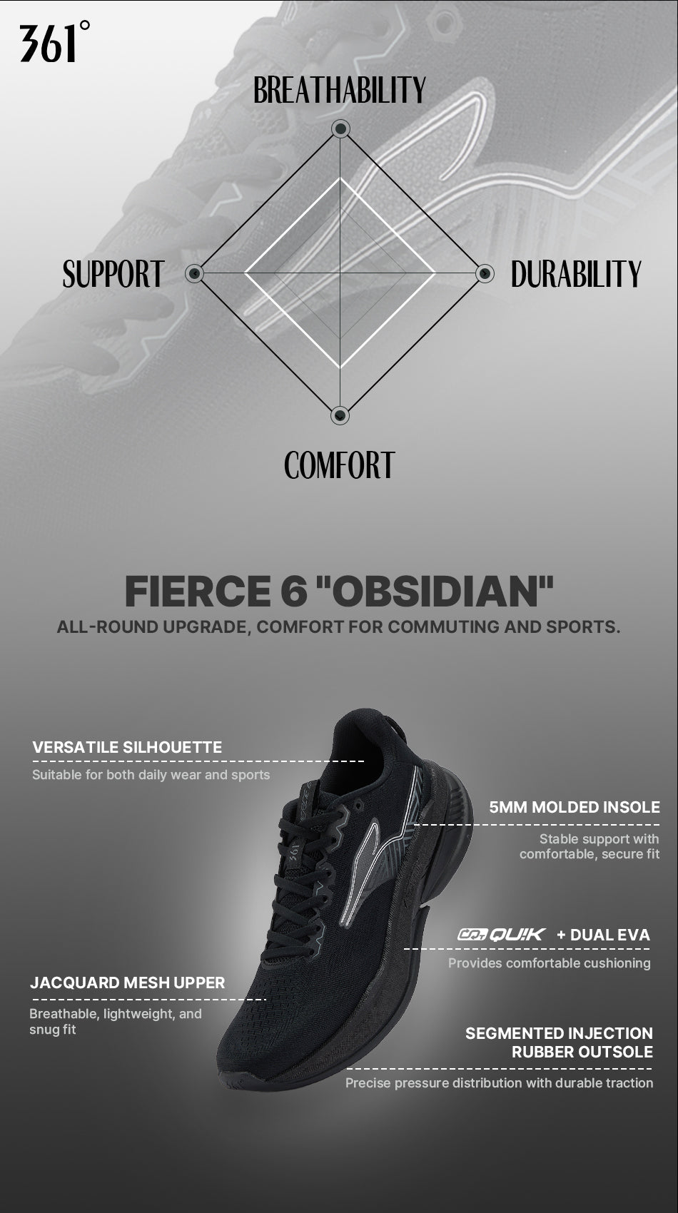 The CQT QU!K top layer delivers high rebound, while dual EVA beneath provides stable support for fatigue-free long walks. A molded insole supports the arch, and medial EVA helps prevent overpronation. Durable outsole ensures reliable grip, and the jacquard upper stays breathable—comfortable for both commuting and exercise.