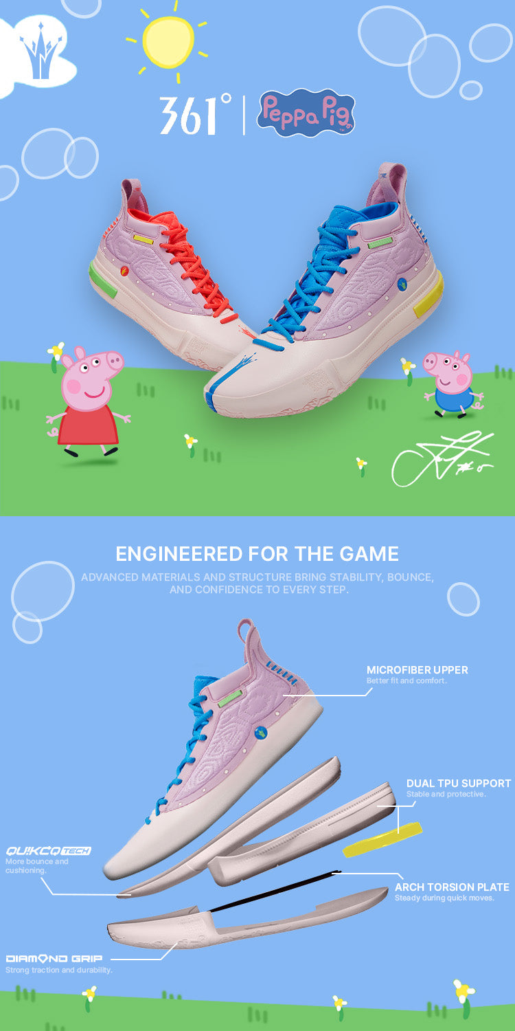 A full-size TPU on both the inner and outer sides, combined with a TPU at the heel, forms a dual TPU system that provides athletes with enhanced support and stability to dominate the court.