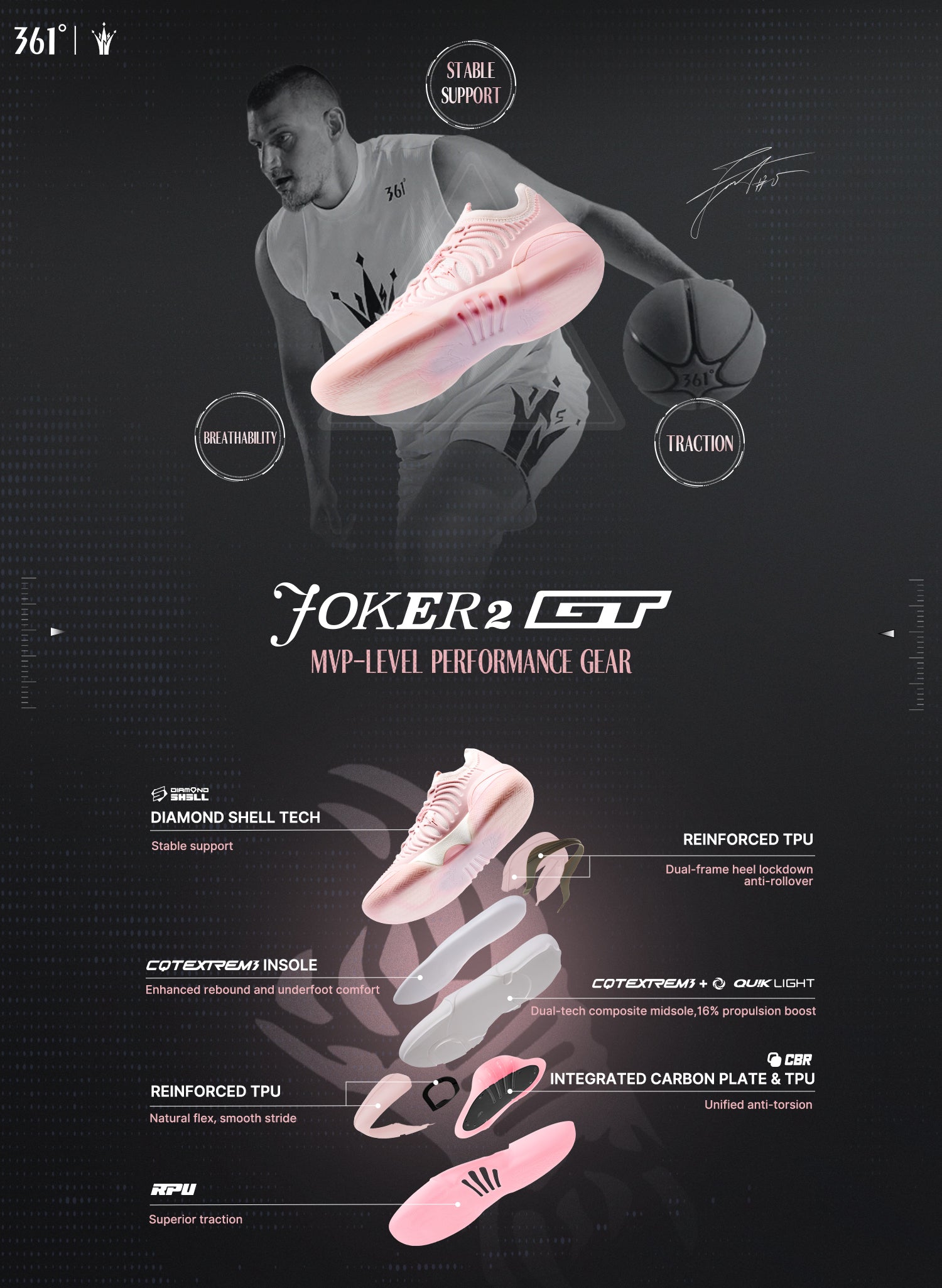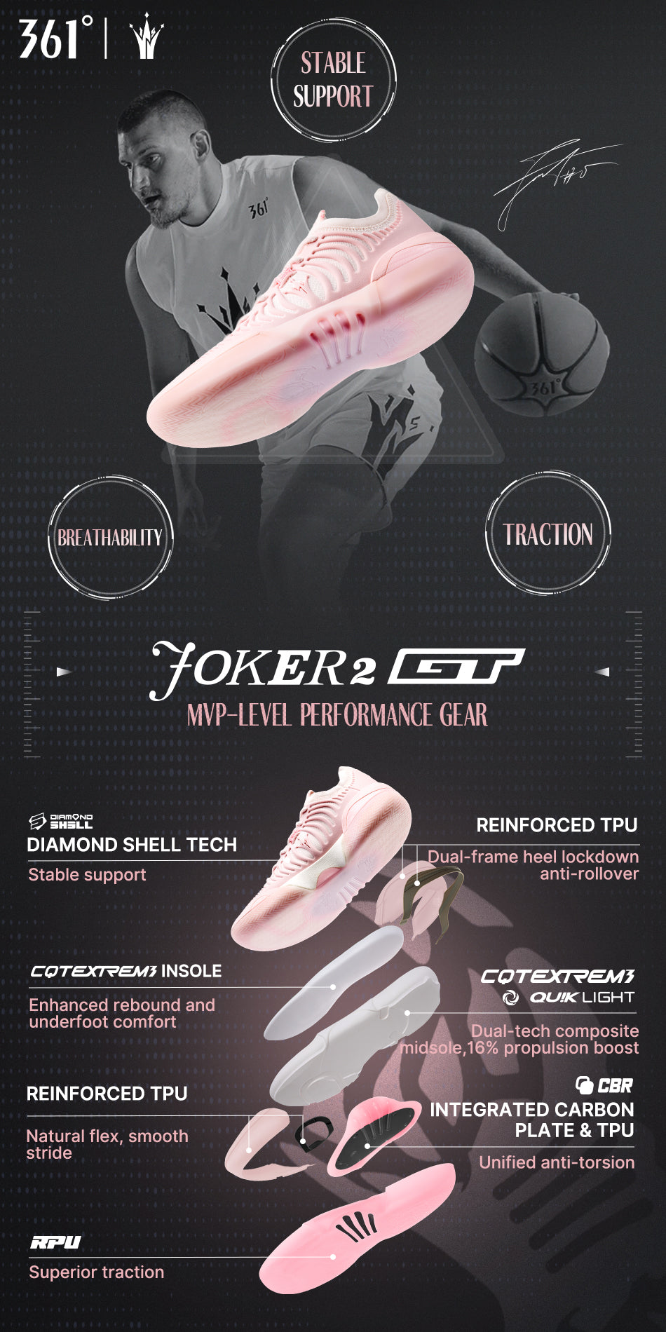 Powered by a dual-midsole system combining CQTEXTREME (CO₂ physical supercritical foaming) and QU!KLIGHT technology, propulsion is increased by 16% while chemical impact is reduced. The setup delivers responsive forefoot rebound and cushioned rearfoot impact absorption, effectively easing fatigue during intense gameplay.