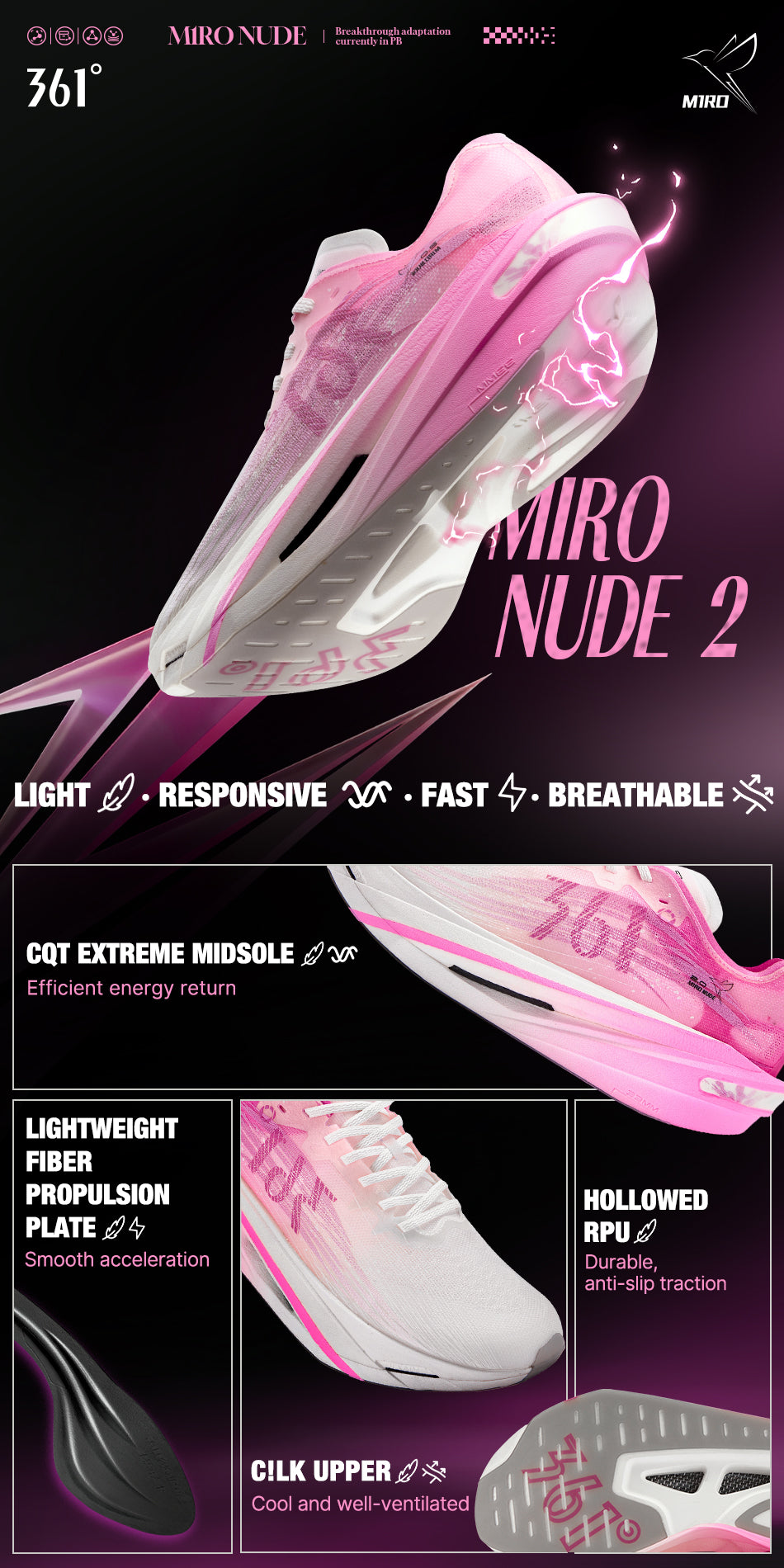 A lightweight fiber propulsion plate works with the midsole foam to convert landing energy into powerful rebound. The smooth transition reduces energy loss, enabling quicker starts and seamless acceleration—so every step feels sharp and controlled over long distances.