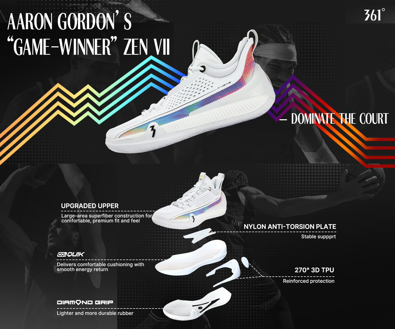 ZEN 7 Game Winner – Aaron Gordon's game-winning shoe! Equipped with full-length CQT cushioning and Soaring Area propulsion, it's built for versatile wings who dominate both ends.