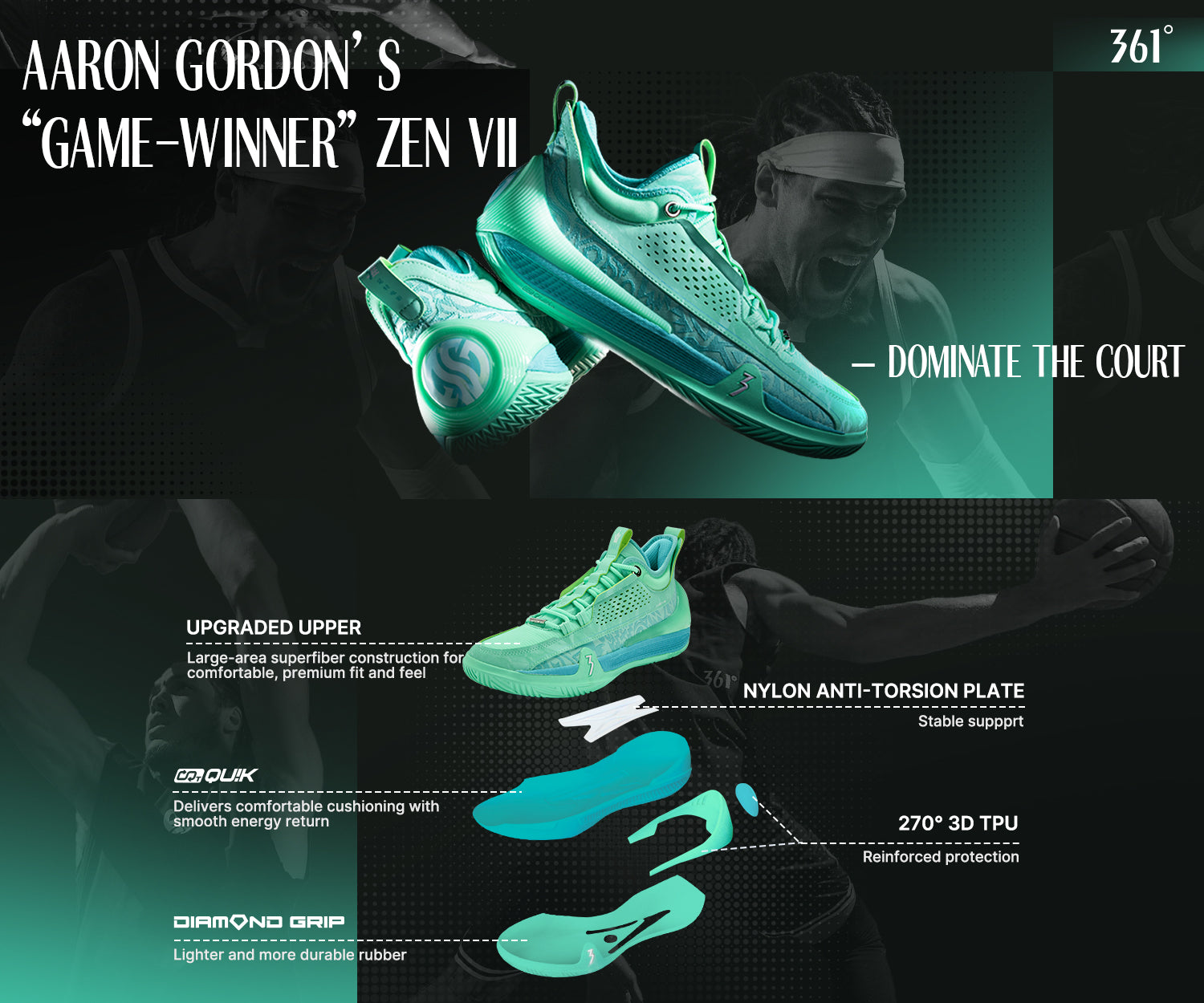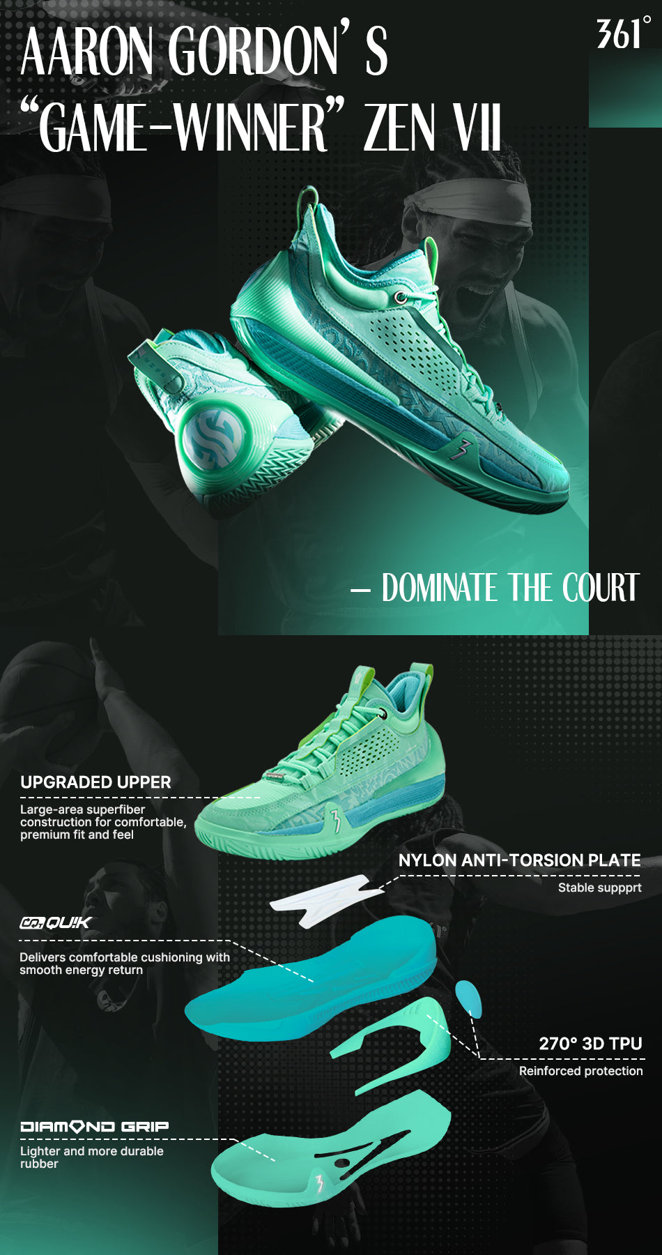 ZEN 7 Game Winner – Aaron Gordon's game-winning shoe! Equipped with full-length CQT cushioning and Soaring Area propulsion, it's built for versatile wings who dominate both ends.